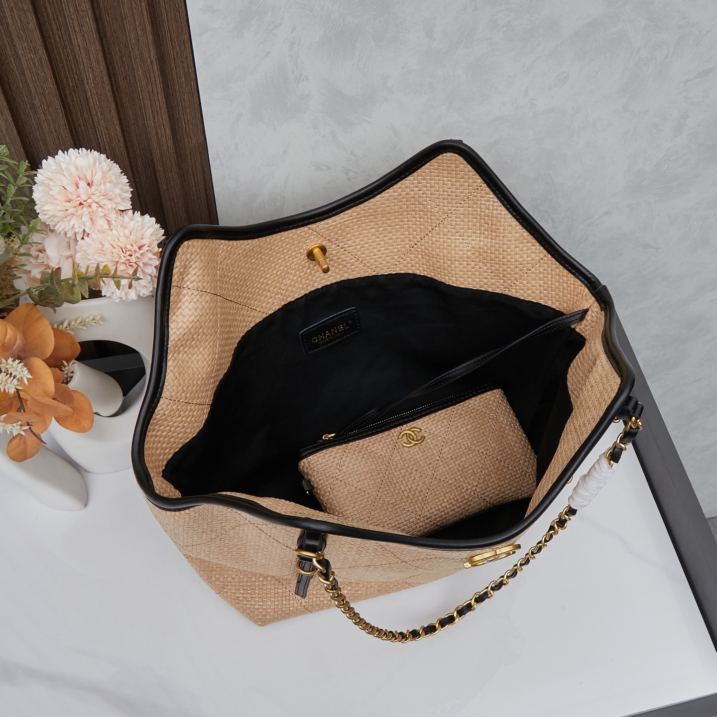 - Hardware: Signature CC logo in polished gold finish