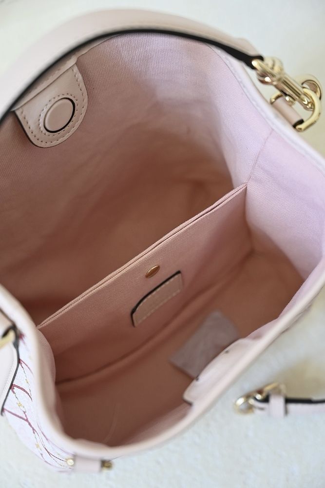 - Silhouette: Small bucket bag shape with structured base